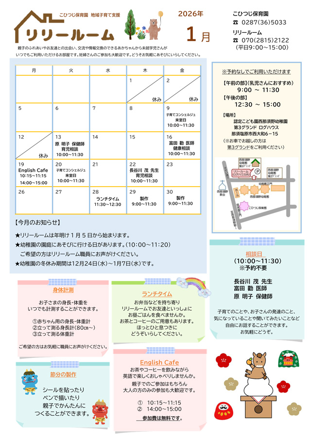 栃木県那須塩原市西大和6-15 西那須野幼稚園内 学童保育室1・2・3 |