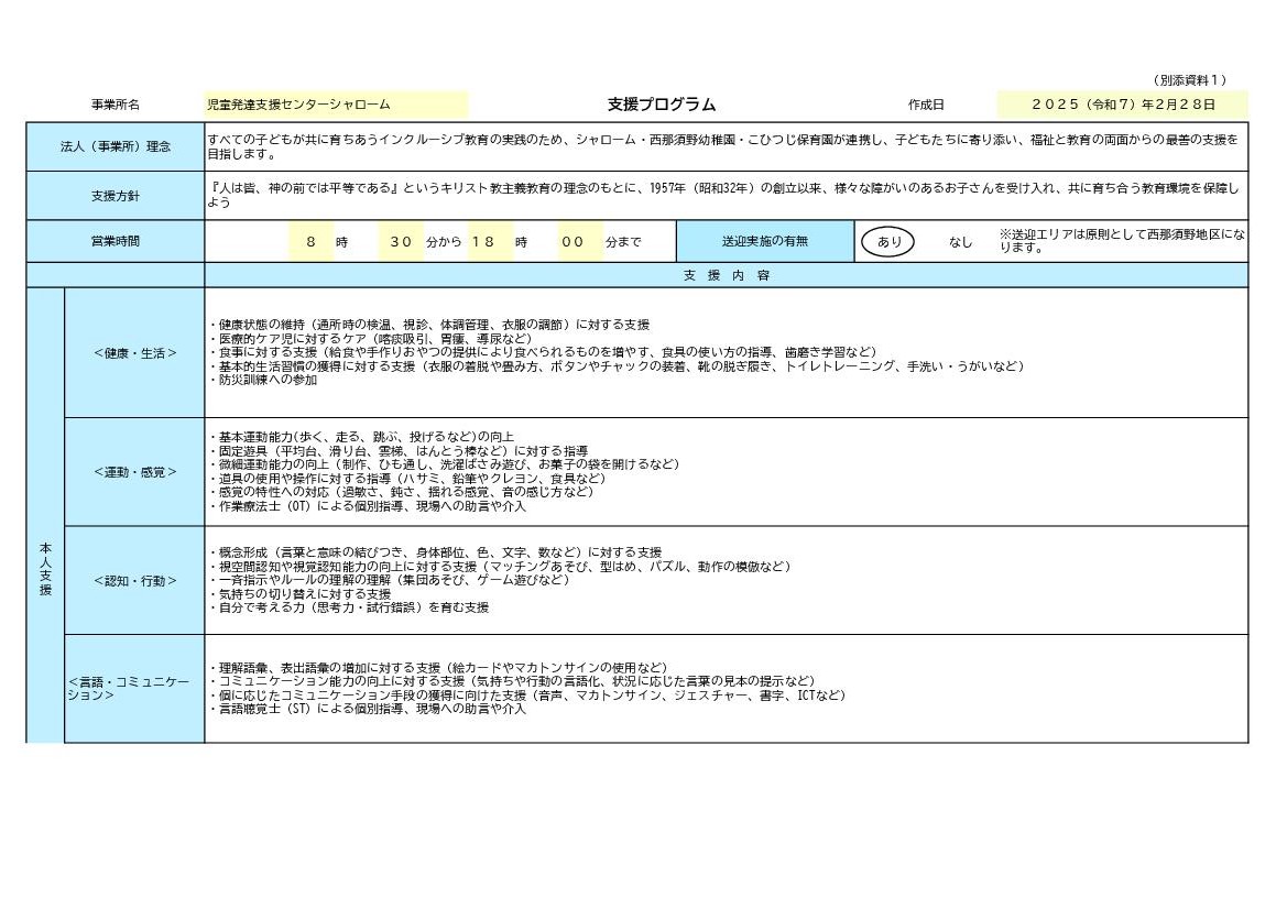 学校法人西那須野学園 児童発達支援センターシャローム